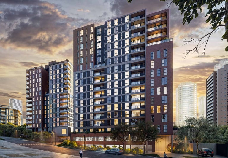 Apartamentos de 2 e 3 quartos de 62 a 84m², 2 vagas de garagem, bicicletário privativo, área de lazer completa e projeto assinado pelo renomado escritório de arquitetura MKZ.